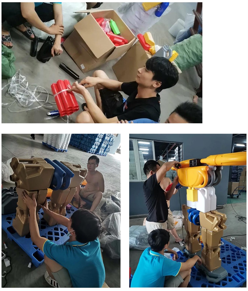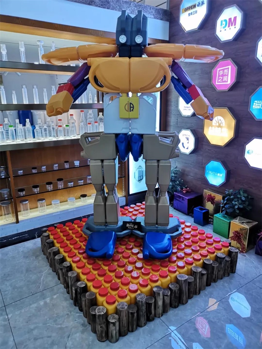 越前隊采用機油瓶系列產(chǎn)品進行機器人造型拼接,機器人代表科技,代表未來,同時也象征著對未來的目標和向往!寓意著公司以后能不斷發(fā)展壯大、向美好的未來奮力前行!只有想不到,沒有做不到,物盡所用,人盡所能,我們就是無所不能創(chuàng)意無限的變形金剛。