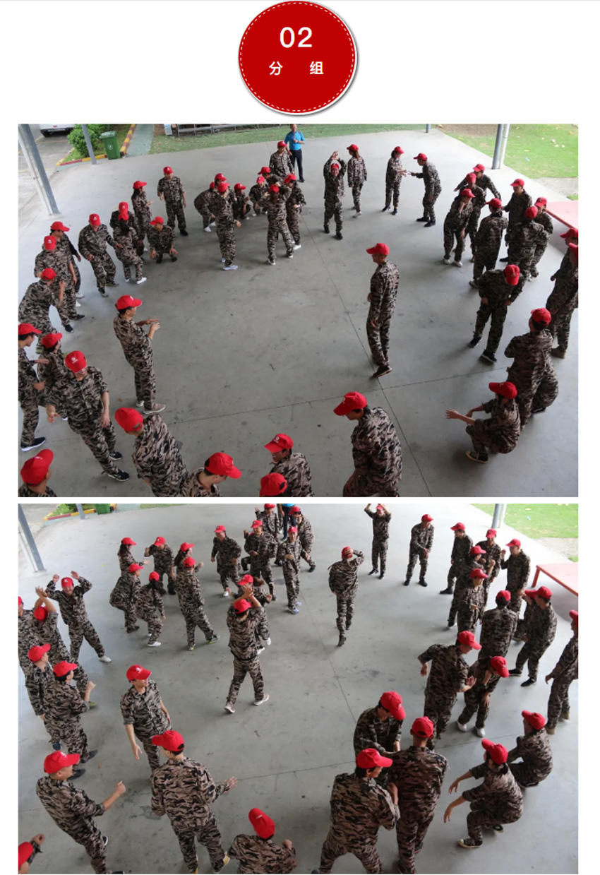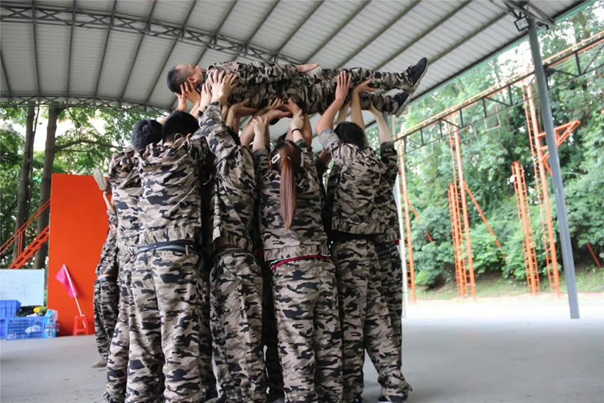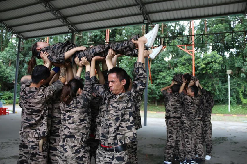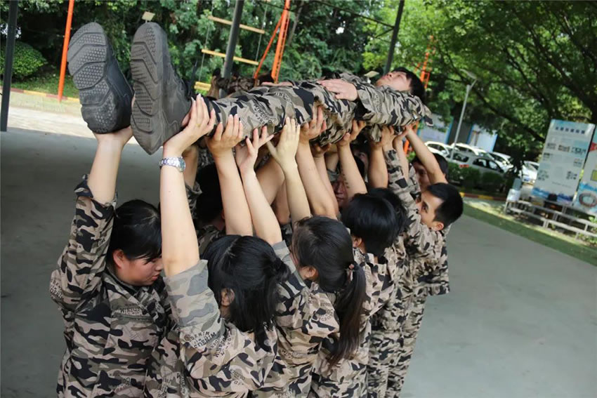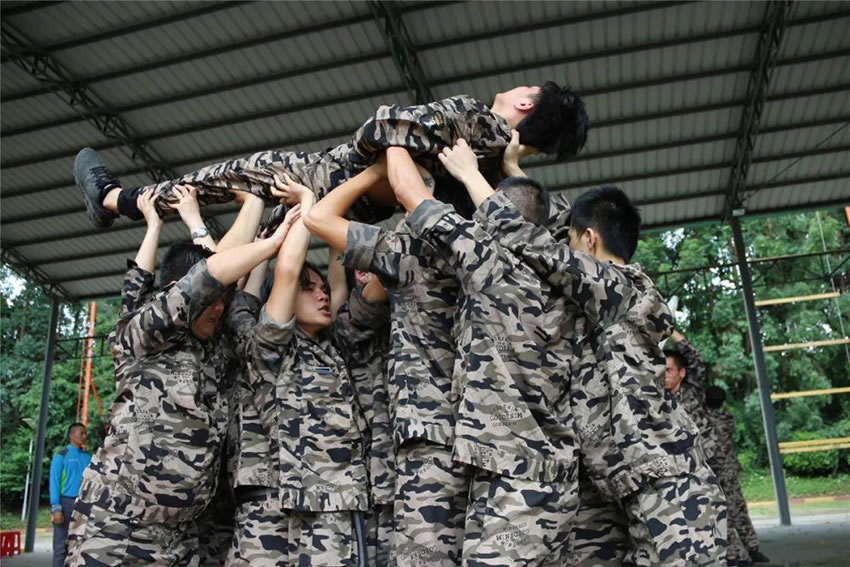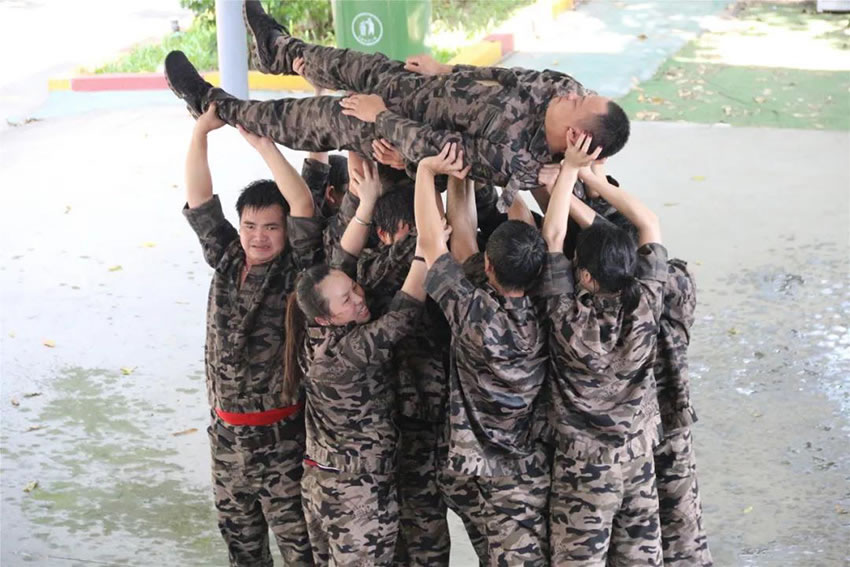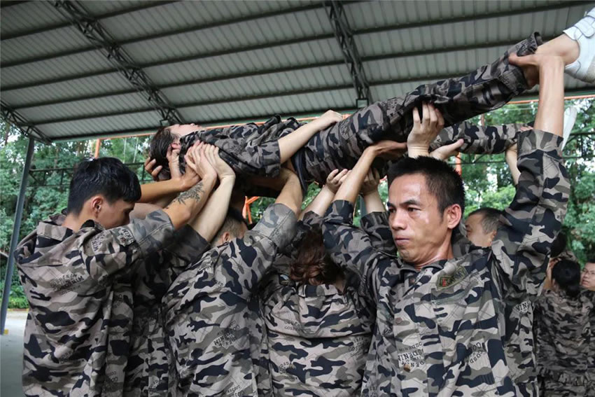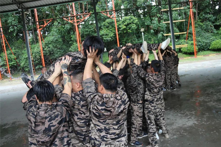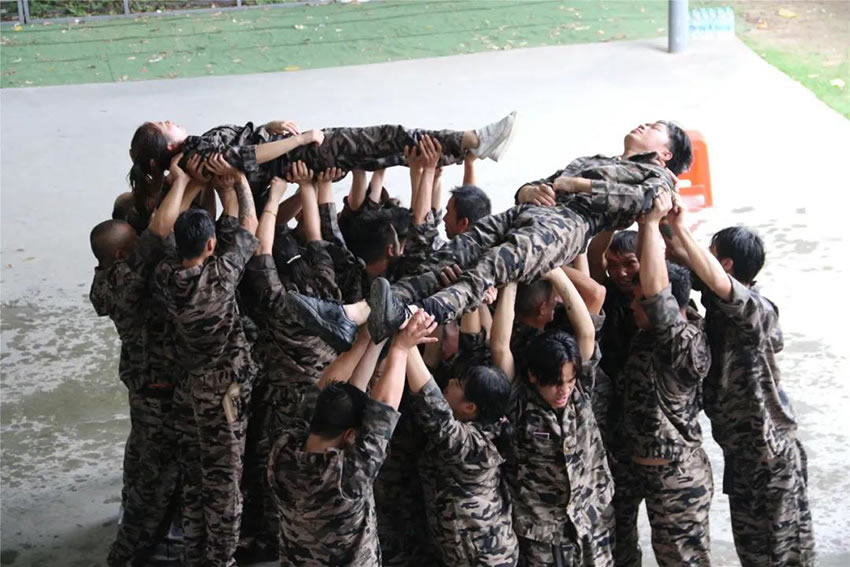 2 、被托舉的學(xué)員必須全身放松,整個過程中堅持托舉30分鐘;在這期間組員不能松懈,手臂必須保持伸直的狀態(tài),過程中如有學(xué)員違反任何規(guī)則,將增加全體托舉時間或者減少托舉人數(shù)。