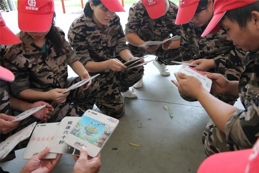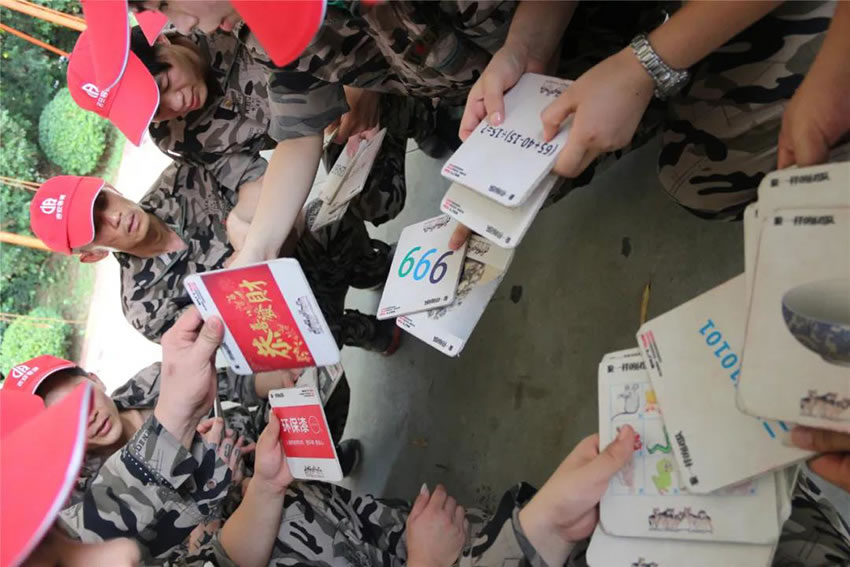 把團(tuán)隊分為四組進(jìn)行PK,教官事先準(zhǔn)備好30張牌,每張牌代表這數(shù)字1~30,需要通過聯(lián)想的方式解密每張牌對應(yīng)的數(shù)字,每組人員每次有1分鐘時間,把地上的牌按照1~30的順序由隊長交給教官,在1分鐘內(nèi)累計拿到的牌數(shù)越多積分越高,在比賽中犯規(guī)將扣取相應(yīng)分?jǐn)?shù),6輪過后累計分?jǐn)?shù)則為組總分。