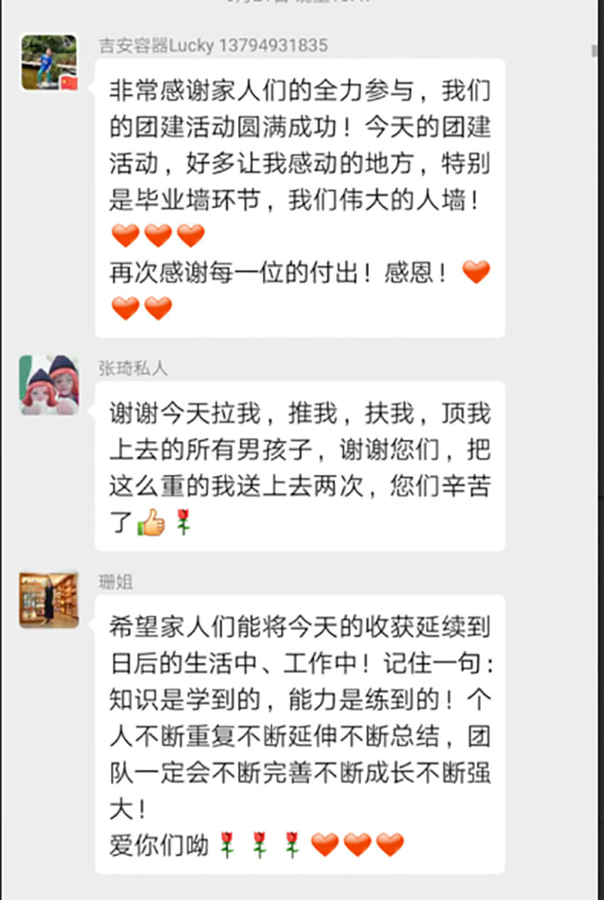 吉安容器在去年首次選擇與東莞三合團(tuán)建團(tuán)隊承辦我們一年一度的團(tuán)隊拓展項目,在那一次主題為“凝心聚力、攜手同行”的團(tuán)隊拓展體驗中,給我們帶來了巨大的震撼和心靈的感觸,通過給教官“狠狠的上了一課”之后,我們更直面團(tuán)隊中存在的不足,每一位參與者重審自我,得到了精神上的提升;今年,我們繼續(xù)選擇“三合團(tuán)建”團(tuán)隊來承辦今年的團(tuán)隊拓展訓(xùn)練營,卷土重來的我們,再一次審視不一樣的自己,同樣的收獲滿滿,讓我,帶您們走進(jìn),專屬吉安容器的2020年6月21日.