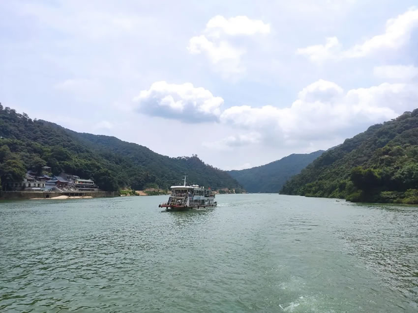 中午,我們前往清遠北江,泛舟于江渚之上,一覽北江景色。豐盛的午餐就安排在北江游船上,江面波光粼粼,清風徐來,甚是愜意。