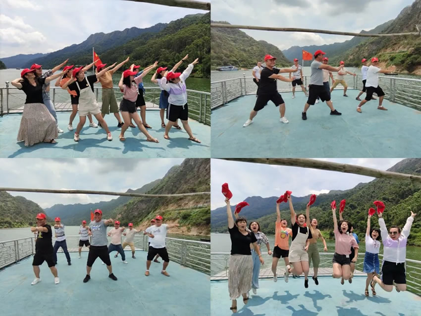 清遠之行結(jié)束了,這次旅行我們收獲了很多。除了旅行游玩的快樂,我們的團隊更加具有凝聚力?;顒又泻芏嗳藶榧w默默奉獻,有些項目不可以帶手機和首飾,就能看到一個人拿著二十幾部手機為挑戰(zhàn)極限的同事加油打氣的場面......