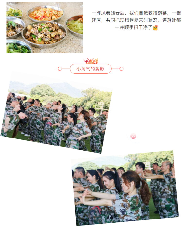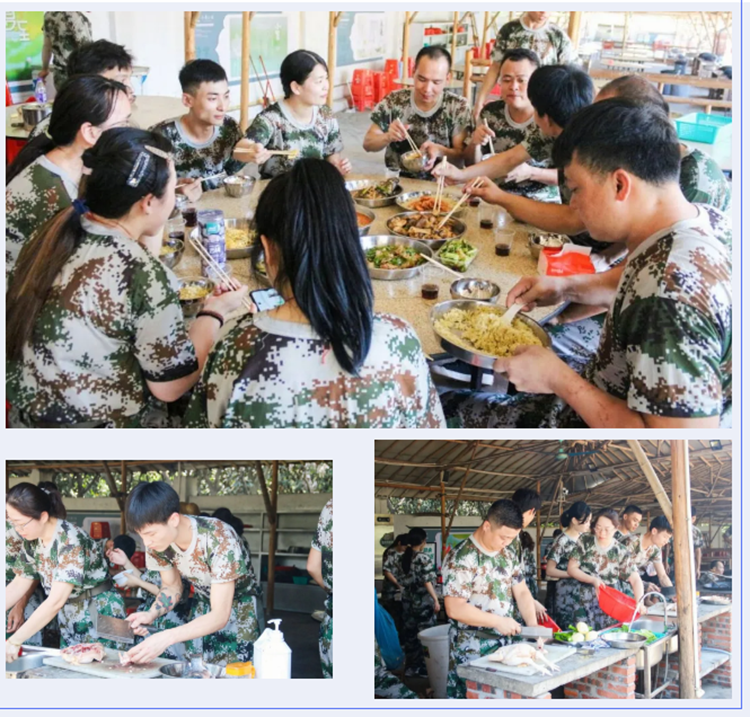 不同以往的圍餐,今年的團建采取“自己動手豐衣足食”的模式,開啟自給自足模式,“吃貨群體”并非浪得虛名,說起吃,自認沒人比我們更專注,同樣的食材硬是做出不同的花招,他做紅燒魚,我就做糖醋,你做燜雞,我就做辣子雞,雞蛋都可以做出蛋炒飯、西紅柿炒蛋、蛋花湯、蒸蛋、蔥花蛋,每隊都有那么幾個掌勺大神,其他人也沒有袖手旁觀,各自充當小兵,燒柴洗菜、切菜洗鍋、有人洗菜,有人專門刷鍋,有人專門負責添柴、有人專門負責運送材料... 不一會功夫八菜一湯齊上桌,不得不佩服我們在吃方面的協(xié)調性和高度配合度。