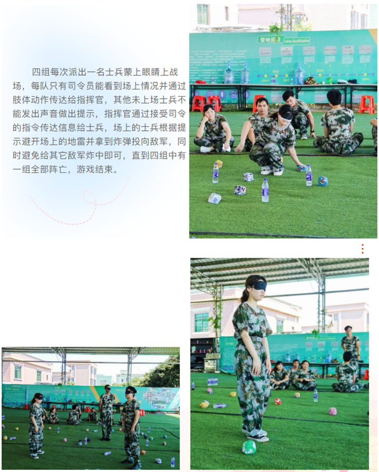 現(xiàn)場呈現(xiàn)出各種笑皆非的名場面,司令官做出的動作指揮官理解錯,司令官下達左轉,指揮官的命令卻是右轉,有時指揮官的命令對了,士兵卻不套路出牌做出了完全錯誤的行動,也經常出現(xiàn)了信號失聯(lián),指揮官吼叫半天士兵呆滯,或者司令官指揮半天,指揮官一竅不通,指揮官自由發(fā)揮添加自己的一些內容、有的剛上場只走了一步就踩雷犧牲,有的躲過了地雷卻沒躲過敵人的炸彈,也有的士兵收到投彈指令遲遲不下手給人先下手為強...更有場下未上場的士兵看到如此場面紛紛急如熱鍋上的螞蟻一般恨不得自己上場指揮作戰(zhàn)。