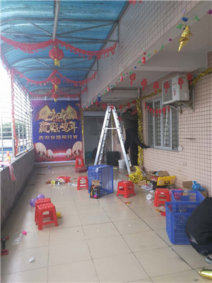 13號下午開始我們就著手布置會場了,我們想要一種溫馨、熱鬧并富有節(jié)日氣氛的年會會場,讓大家從視覺上,感官上感受到熱烈的氛圍,多年的場地布置經(jīng)驗(yàn)已經(jīng)讓我們得心應(yīng)手,不慌不亂。