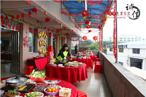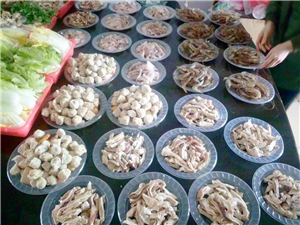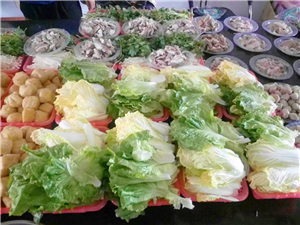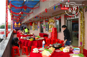 14號下午三點(diǎn)負(fù)責(zé)食材及餐桌的同事就位,開始擺放桌椅,食材拼盤,電磁爐鍋具到位,大家都在為晚宴做準(zhǔn)備,令我想起了老家年三十一家老小為了年夜飯忙碌的場景,忙碌中透著溫馨。