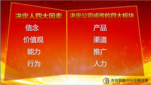 18:30,尾牙宴會正式開始,主持人宣布晚會開始,并請陳總上臺做年終總結(jié),分享他的從商之道,緊接著請出各部門主管做工作匯報,總結(jié)。