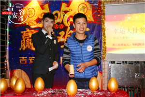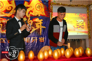 我們的重頭戲現(xiàn)在就來啦!今年抽獎環(huán)節(jié)和以往不同,從抽獎改為砸幸運(yùn)金蛋,每個金蛋里面都有一個代表意頭的字條,字條的意思代表了不同金額的紅包,不管多少都代表了公司對每個人新的一年的美好祝愿,那么,新的一年里你希望得到怎樣的祝福呢?那就拿起你手中的錘子,砸下去。