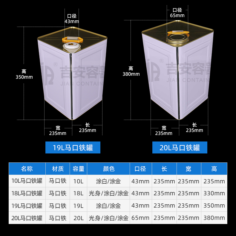 東莞市吉安包裝容器有限公司創(chuàng)立于2000年8月1日,是中國(guó)知名品牌企業(yè)。已通過(guò)ISO 9001質(zhì)量管理體系資質(zhì)認(rèn)證,加入了中國(guó)中空協(xié)會(huì),并獲得《中國(guó)知名品牌》,《國(guó)家標(biāo)準(zhǔn)合格產(chǎn)品》,《全國(guó)重合同守信用AAA級(jí)企業(yè)》,《質(zhì)量.服務(wù).誠(chéng)信AAA企業(yè)》等榮譽(yù)稱號(hào)。根據(jù)材質(zhì)的不同,我們的產(chǎn)品分為塑料容器、鐵質(zhì)容器、鋁材容器、玻璃容器、紙質(zhì)容器等五大類。按產(chǎn)品的名稱分為塑料桶、塑料瓶、包裝桶、涂料桶、機(jī)油桶、油脂桶、化工罐、膠水瓶、鐵桶、鐵罐、鋁瓶、鋁罐、阻隔瓶、高阻隔瓶等,容量從3ML至1000L多種規(guī)格,多種款式。適合包裝的產(chǎn)品包括:化學(xué)試劑、化工原料、化工助劑、飼料添加劑、油墨、油漆、樹(shù)脂農(nóng)藥、日用化學(xué)品、聚氨脂、膠粘劑,廣泛應(yīng)用于化工、建筑、食品、醫(yī)療、生物等各領(lǐng)域。