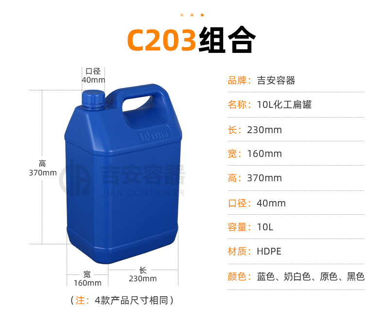 東莞市吉安包裝容器有限公司創(chuàng)立于2000年8月1日,是中國知名品牌企業(yè)。已通過ISO 9001質(zhì)量管理體系資質(zhì)認證,加入了中國中空協(xié)會,并獲得《中國知名品牌》,《國家標準合格產(chǎn)品》,《全國重合同守信用AAA級企業(yè)》,《質(zhì)量.服務.誠信AAA企業(yè)》等榮譽稱號。根據(jù)材質(zhì)的不同,我們的產(chǎn)品分為塑料容器、鐵質(zhì)容器、鋁材容器、玻璃容器、紙質(zhì)容器等五大類。按產(chǎn)品的名稱分為塑料桶、塑料瓶、包裝桶、涂料桶、機油桶、油脂桶、化工罐、膠水瓶、鐵桶、鐵罐、鋁瓶、鋁罐、阻隔瓶、高阻隔瓶等,容量從3ML至1000L多種規(guī)格,多種款式。適合包裝的產(chǎn)品包括:化學試劑、化工原料、化工助劑、飼料添加劑、油墨、油漆、樹脂農(nóng)藥、日用化學品、聚氨脂、膠粘劑,廣泛應用于化工、建筑、食品、醫(yī)療、生物等各領域。