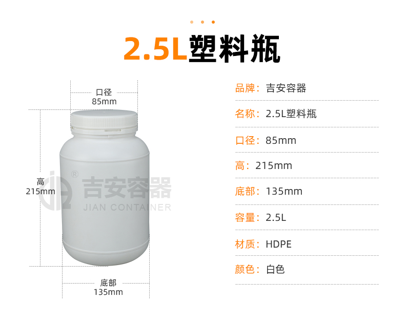 東莞市吉安包裝容器有限公司創(chuàng)立于2000年8月1日,是中國知名品牌企業(yè)。已通過ISO 9001質(zhì)量管理體系資質(zhì)認(rèn)證,加入了中國中空協(xié)會,并獲得《中國知名品牌》,《國家標(biāo)準(zhǔn)合格產(chǎn)品》,《全國重合同守信用AAA級企業(yè)》,《質(zhì)量.服務(wù).誠信AAA企業(yè)》等榮譽稱號。根據(jù)材質(zhì)的不同,我們的產(chǎn)品分為塑料容器、鐵質(zhì)容器、鋁材容器、玻璃容器、紙質(zhì)容器等五大類。按產(chǎn)品的名稱分為塑料桶、塑料瓶、包裝桶、涂料桶、機油桶、油脂桶、化工罐、膠水瓶、鐵桶、鐵罐、鋁瓶、鋁罐、阻隔瓶、高阻隔瓶等,容量從3ML至1000L多種規(guī)格,多種款式。適合包裝的產(chǎn)品包括:化學(xué)試劑、化工原料、化工助劑、飼料添加劑、油墨、油漆、樹脂農(nóng)藥、日用化學(xué)品、聚氨脂、膠粘劑,廣泛應(yīng)用于化工、建筑、食品、醫(yī)療、生物等各領(lǐng)域。