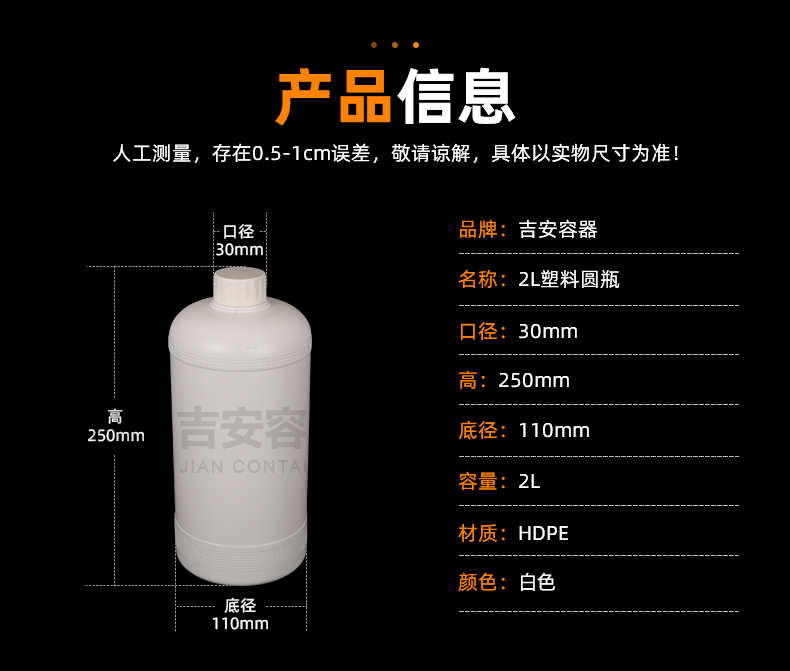 東莞市吉安包裝容器有限公司創(chuàng)立于2000年8月1日,是中國知名品牌企業(yè)。已通過ISO 9001質量管理體系資質認證,加入了中國中空協(xié)會,并獲得《中國知名品牌》,《國家標準合格產(chǎn)品》,《全國重合同守信用AAA級企業(yè)》,《質量.服務.誠信AAA企業(yè)》等榮譽稱號。根據(jù)材質的不同,我們的產(chǎn)品分為塑料容器、鐵質容器、鋁材容器、玻璃容器、紙質容器等五大類。按產(chǎn)品的名稱分為塑料桶、塑料瓶、包裝桶、涂料桶、機油桶、油脂桶、化工罐、膠水瓶、鐵桶、鐵罐、鋁瓶、鋁罐、阻隔瓶、高阻隔瓶等,容量從3ML至1000L多種規(guī)格,多種款式。適合包裝的產(chǎn)品包括:化學試劑、化工原料、化工助劑、飼料添加劑、油墨、油漆、樹脂農(nóng)藥、日用化學品、聚氨脂、膠粘劑,廣泛應用于化工、建筑、食品、醫(yī)療、生物等各領域。