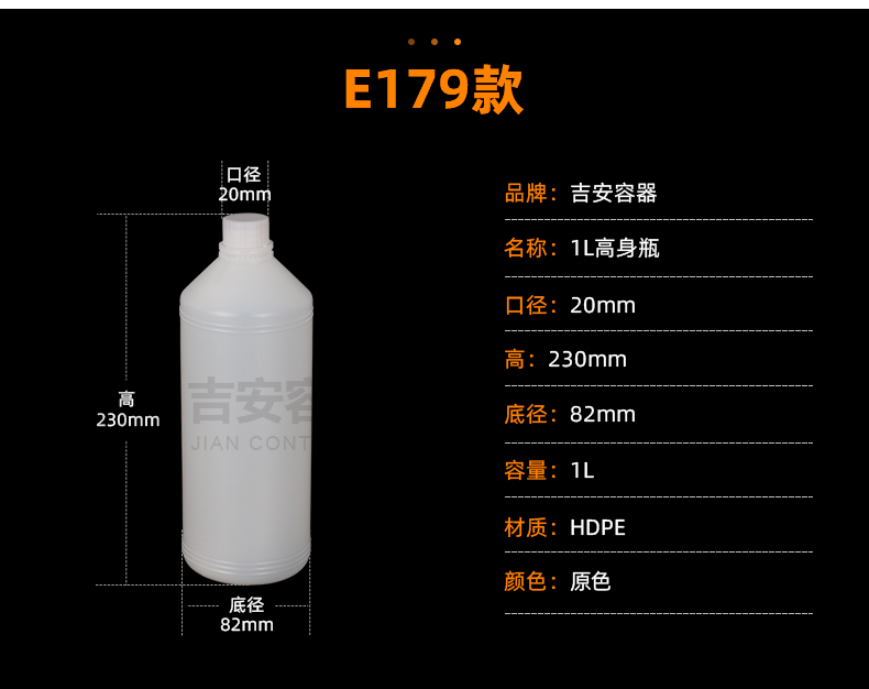 東莞市吉安包裝容器有限公司創(chuàng)立于2000年8月1日,是中國知名品牌企業(yè)。已通過ISO 9001質(zhì)量管理體系資質(zhì)認證,加入了中國中空協(xié)會,并獲得《中國知名品牌》,《國家標準合格產(chǎn)品》,《全國重合同守信用AAA級企業(yè)》,《質(zhì)量.服務.誠信AAA企業(yè)》等榮譽稱號。根據(jù)材質(zhì)的不同,我們的產(chǎn)品分為塑料容器、鐵質(zhì)容器、鋁材容器、玻璃容器、紙質(zhì)容器等五大類。按產(chǎn)品的名稱分為塑料桶、塑料瓶、包裝桶、涂料桶、機油桶、油脂桶、化工罐、膠水瓶、鐵桶、鐵罐、鋁瓶、鋁罐、阻隔瓶、高阻隔瓶等,容量從3ML至1000L多種規(guī)格,多種款式。適合包裝的產(chǎn)品包括:化學試劑、化工原料、化工助劑、飼料添加劑、油墨、油漆、樹脂農(nóng)藥、日用化學品、聚氨脂、膠粘劑,廣泛應用于化工、建筑、食品、醫(yī)療、生物等各領域。