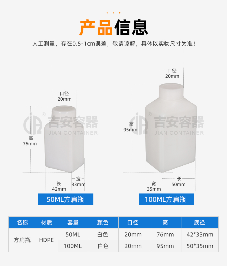 | 容量:50ml/ 100ml | 材質(zhì):HDPE |