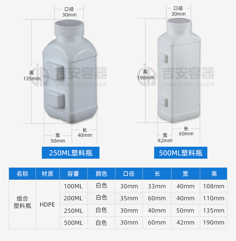東莞市吉安包裝容器有限公司創(chuàng)立于2000年8月1日,是中國知名品牌企業(yè)。已通過ISO 9001質量管理體系資質認證,加入了中國中空協會,并獲得《中國知名品牌》,《國家標準合格產品》,《全國重合同守信用AAA級企業(yè)》,《質量.服務.誠信AAA企業(yè)》等榮譽稱號。根據材質的不同,我們的產品分為塑料容器、鐵質容器、鋁材容器、玻璃容器、紙質容器等五大類。按產品的名稱分為塑料桶、塑料瓶、包裝桶、涂料桶、機油桶、油脂桶、化工罐、膠水瓶、鐵桶、鐵罐、鋁瓶、鋁罐、阻隔瓶、高阻隔瓶等,容量從3ML至1000L多種規(guī)格,多種款式。適合包裝的產品包括:化學試劑、化工原料、化工助劑、飼料添加劑、油墨、油漆、樹脂農藥、日用化學品、聚氨脂、膠粘劑,廣泛應用于化工、建筑、食品、醫(yī)療、生物等各領域。
