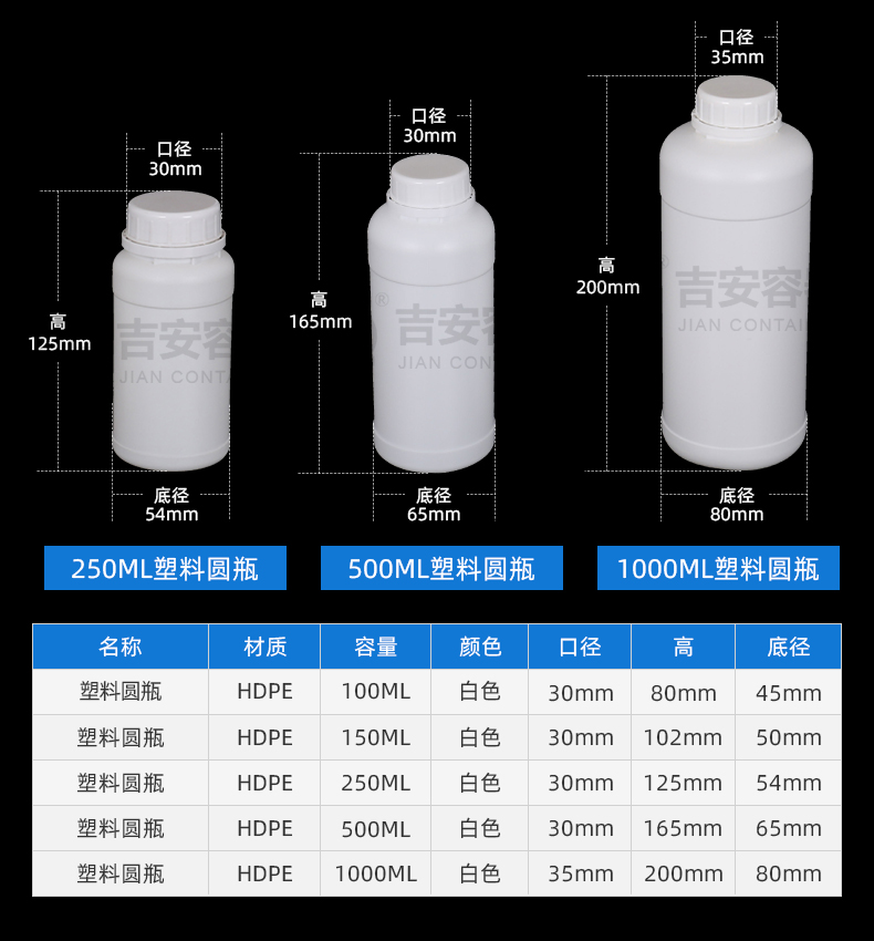 東莞市吉安包裝容器有限公司創(chuàng)立于2000年8月1日,是中國知名品牌企業(yè)。已通過ISO 9001質(zhì)量管理體系資質(zhì)認(rèn)證,加入了中國中空協(xié)會,并獲得《中國知名品牌》,《國家標(biāo)準(zhǔn)合格產(chǎn)品》,《全國重合同守信用AAA級企業(yè)》,《質(zhì)量.服務(wù).誠信AAA企業(yè)》等榮譽(yù)稱號。根據(jù)材質(zhì)的不同,我們的產(chǎn)品分為塑料容器、鐵質(zhì)容器、鋁材容器、玻璃容器、紙質(zhì)容器等五大類。按產(chǎn)品的名稱分為塑料桶、塑料瓶、包裝桶、涂料桶、機(jī)油桶、油脂桶、化工罐、膠水瓶、鐵桶、鐵罐、鋁瓶、鋁罐、阻隔瓶、高阻隔瓶等,容量從3ML至1000L多種規(guī)格,多種款式。適合包裝的產(chǎn)品包括:化學(xué)試劑、化工原料、化工助劑、飼料添加劑、油墨、油漆、樹脂農(nóng)藥、日用化學(xué)品、聚氨脂、膠粘劑,廣泛應(yīng)用于化工、建筑、食品、醫(yī)療、生物等各領(lǐng)域。