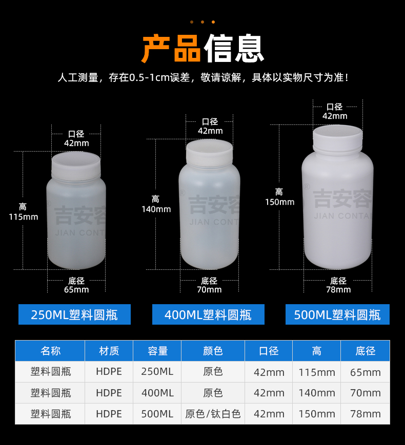 | 品名:500ml中口圓塑料瓶(E124) | |