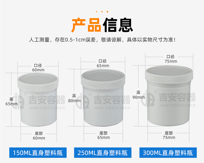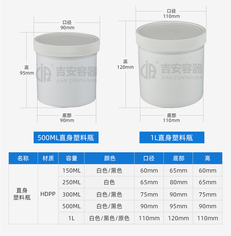 東莞市吉安包裝容器有限公司創(chuàng)立于2000年8月1日,是中國知名品牌企業(yè)。已通過ISO 9001質(zhì)量管理體系資質(zhì)認證,加入了中國中空協(xié)會,并獲得《中國知名品牌》,《國家標準合格產(chǎn)品》,《全國重合同守信用AAA級企業(yè)》,《質(zhì)量.服務.誠信AAA企業(yè)》等榮譽稱號。根據(jù)材質(zhì)的不同,我們的產(chǎn)品分為塑料容器、鐵質(zhì)容器、鋁材容器、玻璃容器、紙質(zhì)容器等五大類。按產(chǎn)品的名稱分為塑料桶、塑料瓶、包裝桶、涂料桶、機油桶、油脂桶、化工罐、膠水瓶、鐵桶、鐵罐、鋁瓶、鋁罐、阻隔瓶、高阻隔瓶等,容量從3ML至1000L多種規(guī)格,多種款式。適合包裝的產(chǎn)品包括:化學試劑、化工原料、化工助劑、飼料添加劑、油墨、油漆、樹脂農(nóng)藥、日用化學品、聚氨脂、膠粘劑,廣泛應用于化工、建筑、食品、醫(yī)療、生物等各領域。