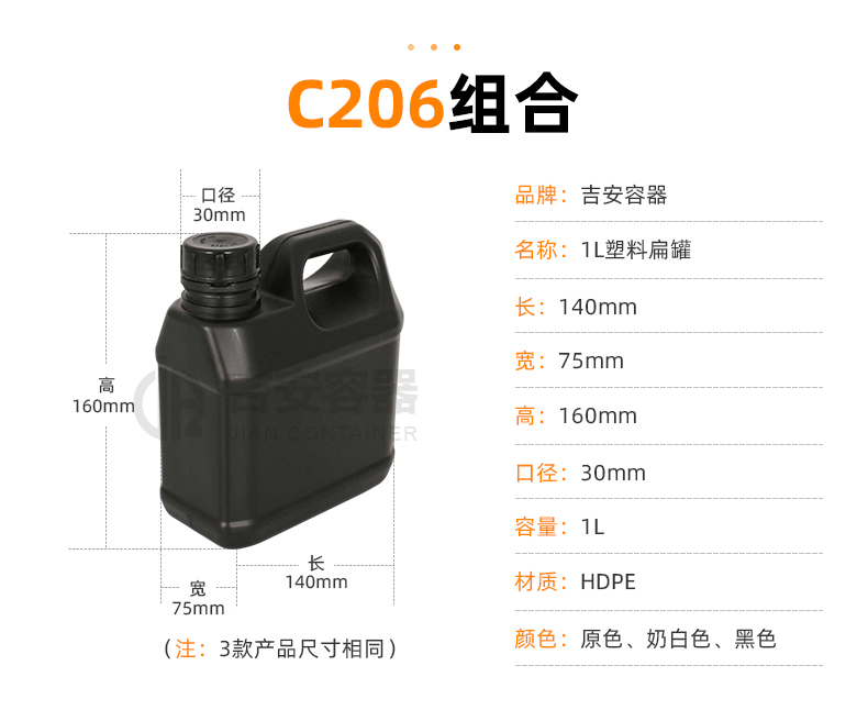 東莞市吉安包裝容器有限公司創(chuàng)立于2000年8月1日,是中國知名品牌企業(yè)。已通過ISO 9001質(zhì)量管理體系資質(zhì)認(rèn)證,加入了中國中空協(xié)會(huì),并獲得《中國知名品牌》,《國家標(biāo)準(zhǔn)合格產(chǎn)品》,《全國重合同守信用AAA級(jí)企業(yè)》,《質(zhì)量.服務(wù).誠信AAA企業(yè)》等榮譽(yù)稱號(hào)。根據(jù)材質(zhì)的不同,我們的產(chǎn)品分為塑料容器、鐵質(zhì)容器、鋁材容器、玻璃容器、紙質(zhì)容器等五大類。按產(chǎn)品的名稱分為塑料桶、塑料瓶、包裝桶、涂料桶、機(jī)油桶、油脂桶、化工罐、膠水瓶、鐵桶、鐵罐、鋁瓶、鋁罐、阻隔瓶、高阻隔瓶等,容量從3ML至1000L多種規(guī)格,多種款式。適合包裝的產(chǎn)品包括:化學(xué)試劑、化工原料、化工助劑、飼料添加劑、油墨、油漆、樹脂農(nóng)藥、日用化學(xué)品、聚氨脂、膠粘劑,廣泛應(yīng)用于化工、建筑、食品、醫(yī)療、生物等各領(lǐng)域。