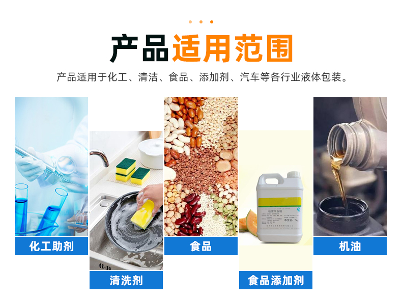 適用于化工溶劑、農(nóng)藥、農(nóng)業(yè)液體肥、硫酸、油墨清洗劑、橡皮布清洗劑、工業(yè)清洗劑、高效潤版液、潔版液、洗網(wǎng)水、開油水、納米陶瓷涂料、聚四氟乙烯(PTFE)涂料、有機(jī)硅涂料、聚醚砜(PES)涂料、特種工業(yè)涂料 。