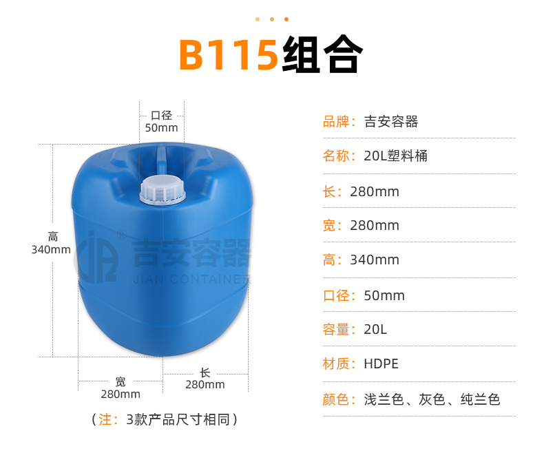 采用HDPE原料吹塑而成,該產(chǎn)品密封性能強(qiáng),配備內(nèi)蓋,可重疊,節(jié)約空間,具耐酸堿特性,產(chǎn)品經(jīng)過密封測驗(yàn),堆碼、跌落測試。