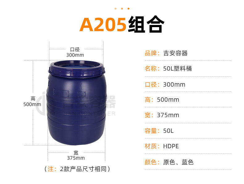 | 品名:50L塑料桶(A205) | |