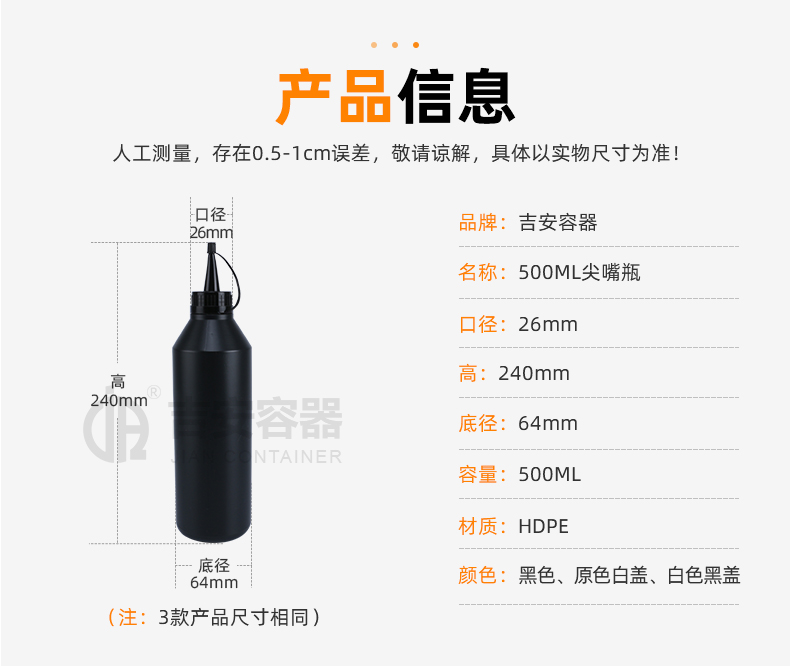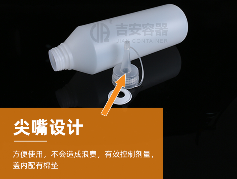 尖嘴瓶適用行業(yè)廣泛,多用于膠水包裝、眼藥水包裝、食品調(diào)料包裝,因其尖嘴特點,具備方便滴膠,操作時流量可控可調(diào),使用方便。