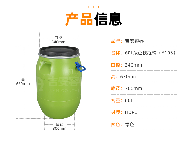| 品名:60L綠色鐵箍桶(A103) | |