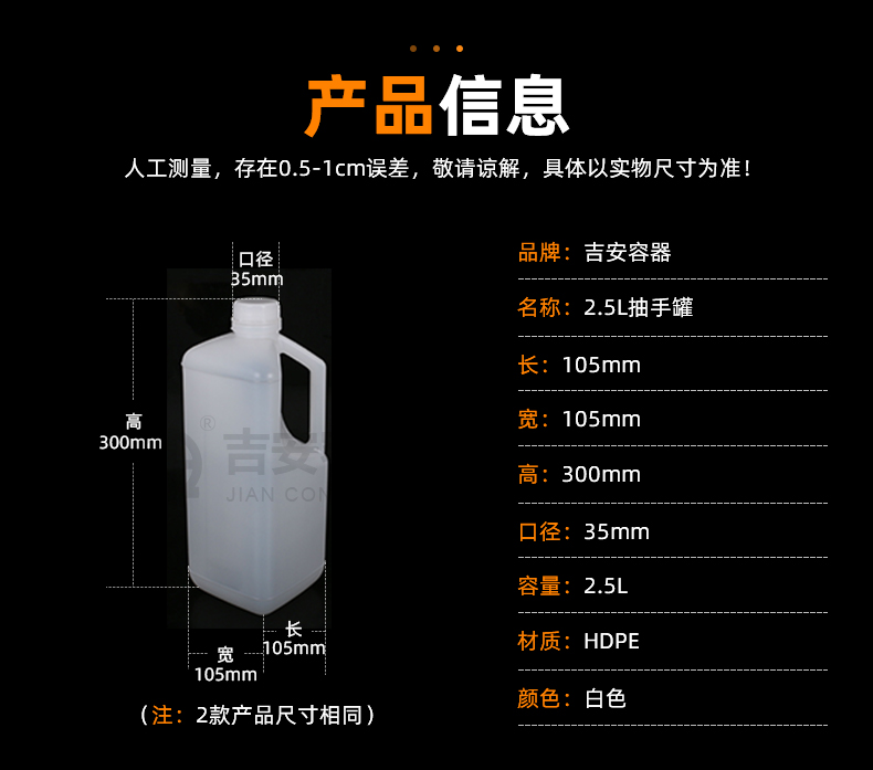 | 容量:2500ml | 材質(zhì):罐蓋-PP,罐身-HDPE |