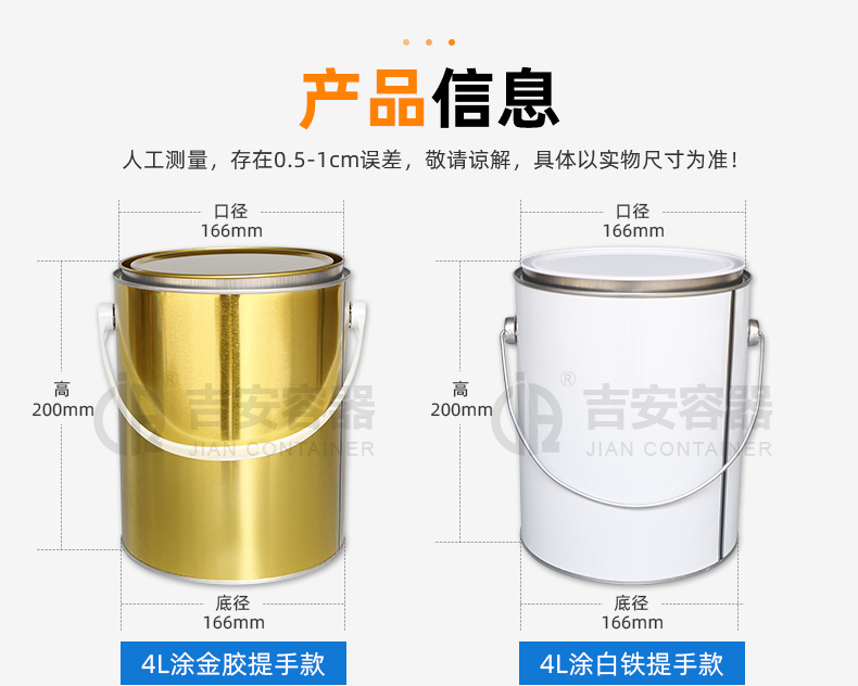 東莞市吉安包裝容器有限公司創(chuàng)立于2000年8月1日,是中國知名品牌企業(yè)。已通過ISO 9001質(zhì)量管理體系資質(zhì)認證,加入了中國中空協(xié)會,并獲得《中國知名品牌》,《國家標準合格產(chǎn)品》,《全國重合同守信用AAA級企業(yè)》,《質(zhì)量.服務(wù).誠信AAA企業(yè)》等榮譽稱號。根據(jù)材質(zhì)的不同,我們的產(chǎn)品分為塑料容器、鐵質(zhì)容器、鋁材容器、玻璃容器、紙質(zhì)容器等五大類。按產(chǎn)品的名稱分為塑料桶、塑料瓶、包裝桶、涂料桶、機油桶、油脂桶、化工罐、膠水瓶、鐵桶、鐵罐、鋁瓶、鋁罐、阻隔瓶、高阻隔瓶等,容量從3ML至1000L多種規(guī)格,多種款式。適合包裝的產(chǎn)品包括:化學(xué)試劑、化工原料、化工助劑、飼料添加劑、油墨、油漆、樹脂農(nóng)藥、日用化學(xué)品、聚氨脂、膠粘劑,廣泛應(yīng)用于化工、建筑、食品、醫(yī)療、生物等各領(lǐng)域。