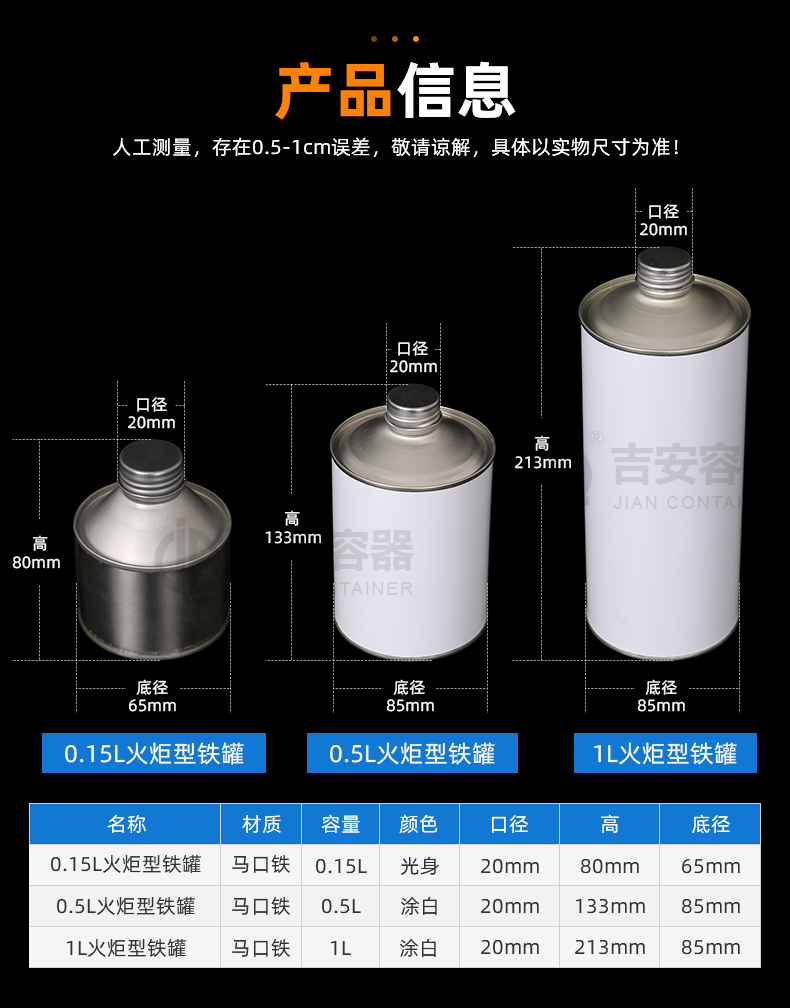 | 品名:150ml火炬形鐵罐(T214) | |